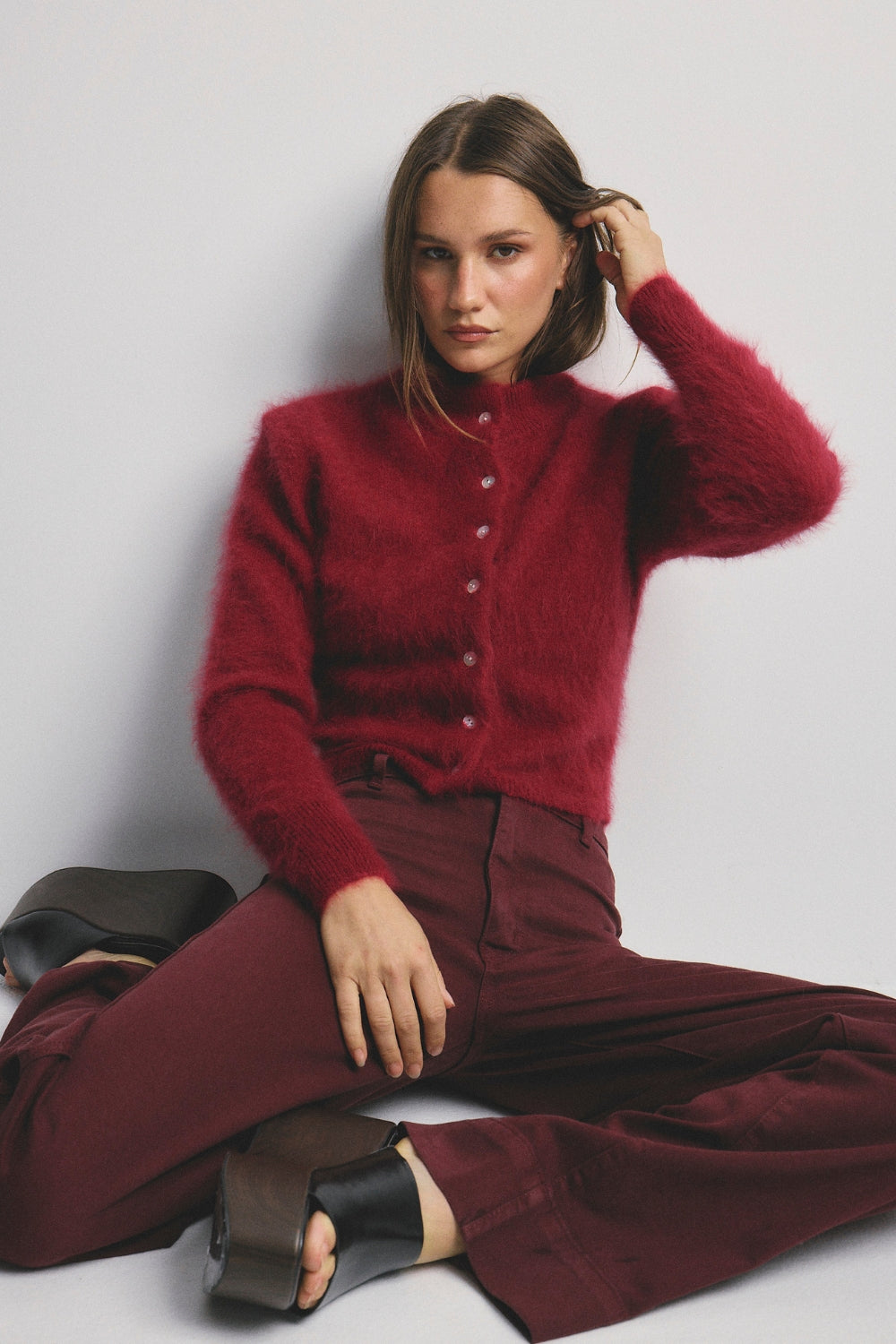 For everyday luxury, the Bella Cardigan. A cropped button through style in the most luxurious cashmere & angora blend. Style with jeans or over a dress on those breezy evenings.